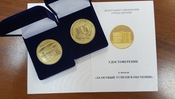 Московскую медаль \”За особые успехи в обучении\” впервые вручили по итогам 2013/14 учебного года. Ее получают выпускники школ столицы, если у них есть одно из достижений — победа или призовое место на Всероссийской олимпиаде школьников, максимальное количество баллов на ЕГЭ по одному из предметов, аттестат с отличием и не менее 220 баллов по трем предметам ЕГЭ.