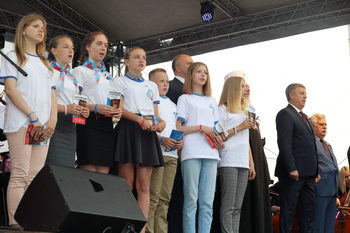 В День России паспорта были торжественно вручены ученице 8 класса гимназии № 1 поселка Навля Анастасии Корсак, ученицам 8 класса средней школы им. Горького города Карачева Анастасии Лоскутовой и Елизавете Подрезенко, ученице 8 класса средней школы им. Кирова города Карачева Алене Петуховой, ученице 8 класса школы № 51 города Брянска Ангелине Тарануха, ученице 8 класса школы № 5 города Карачева Елизавете Панковой и ученику 7 класса школы № 4 города Карачева им. Лоскутова Марку Буркуту.В своем приветственном слове губернатор Брянской области Александр Богомаз отметил, что праздник День России знаменует тот исторический путь, который прошла страна, со всеми победами и достижениями, трудными и переломными моментами.— День России — это символ солидарности, национального единения и ответственности за настоящее и будущее нашей Родины, — сказал глава региона. — Это праздник единства патриотических сил, всех, кто готов работать на благо нашей Родины, укреплять ее могущество и авторитет. Это наш общий праздник!Вместе с земляками, пришедшими на митинг поздравить свою любимую страну с праздником, ребята, ставшие ее полноправными гражданами, исполнили Гимн России. Вечер завершился концертом Брянского Губернаторского симфонического оркестра под руководством Эдуарда Амбарцумяна.