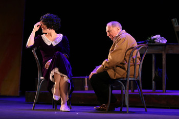 Нежнейший, пронзительнейший «Шагал. Полеты с ангелом», который он отыграл сто один раз. Его партнершей была супруга, Наталья Тенякова, пьеса была о жизни Шагала, великого еврейского художника. И шире – вообще о жизни художника. В его «Шагале» столько вопросов без ответа, столько печали, столь боли и утраты, что все время хочется плакать, когда его смотришь. В финале переживший смерть любимой, голод, эмиграцию, нищету и славу, две мировые войны старик Шагал (Юрский) по лестнице поднимается в небо. Старый человек карабкается туда, где ждет его та, которую он любил всю жизнь… Прорастает в любовь.