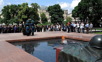 Также в столице сегодня президент Владимир Путин возложил венок к Могиле Неизвестного Солдата у Кремлёвской стены. В церемонии возложения, посвящённой 74-й годовщине начала Великой Отечественной войны, также приняли участие председатель Правительства РФ Дмитрий Медведев, председатель Совета Федерации Валентина Матвиенко, спикер Государственной Думы Сергей Нарышкин, руководители министерств и ведомств, ветераны, военачальники и представители общественности.