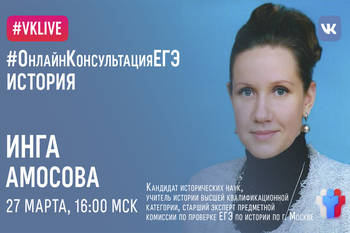 Проведёт онлайн-консультацию Инга Амосова, кандидат исторических наук, учитель истории высшей квалификационной категории, старший эксперт предметной комиссии по проверке ЕГЭ по истории по городу Москве, лауреат \”Гранта Правительства Москвы в сфере образования\” 2014 года, соавтор учебников по истории России для 7-8-х классов, учитель истории школы №1518 Москвы.Во время онлайн-консультации эксперт ответит на вопросы зрителей трансляции. Среди тем консультации: какие нюансы учесть при написании исторического сочинения? На что обратить внимание при выполнении заданий, связанных с анализом исторического источника? Как правильно сформулировать аргументы в подтверждение и опровержение точки зрения историков в задании 24? Как работать с иллюстративным материалом?Онлайн-консультация состоится 27 марта с 16:00 до 17:00 часов по московскому времени.