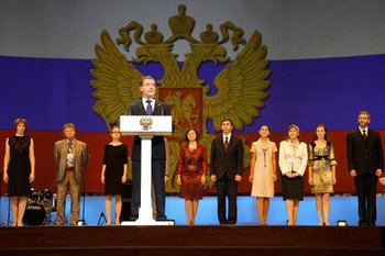 Наконец, на сцене Государственного Кремлевского дворца снова появились пятнадцать лауреатов, министр образования и науки РФ Андрей Фурсенко, ректор МГУ им. Ломоносова Виктор Садовничий. Вошел президент России Дмитрий Медведев. И началась торжественная церемония награждения абсолютного победителя конкурса «Учитель года России-2010».