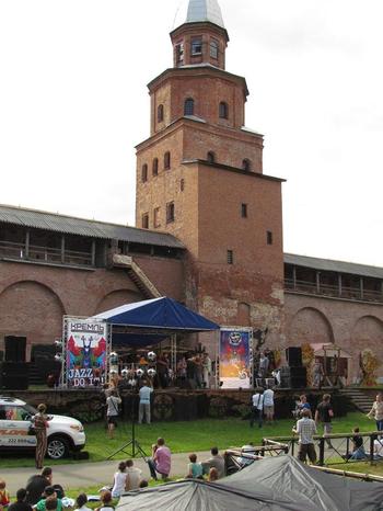 «JUST JAZZ OPEN AIR» — «Только джаз – на открытом воздухе» – приблизительно так можно перевести название третьего международного джазового фестиваля, состоявшегося в Великом Новгороде. «Изюминкой» этого однодневного фестиваля стало то, что организаторы выбрали местом его проведения необычную площадку – под стенами древнего новгородского кремля в историческом центре города. Кремлевская башня Кокуй стала своеобразной декорацией для шоу.