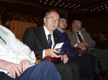 Так, Большую золотую медаль имени М.В.Ломоносова, которая ежегодно присуждается одному российскому и одному иностранному ученым за выдающиеся работы в области естественных и гуманитарных наук, вручили российскому классику физики, академику Спартаку Беляеву и нобелевскому лауреату в области физики Герарду Т-Хоофту, среди последних мест работы которого – ЦЕРН. Первый удостоен награды за выдающийся вклад во многие направления современной физической науки – физику плазмы, теорию квантовых и релятивистских систем многих частиц и теорию атомного ядра и ядерных реакций, второй – за выдающийся вклад в теорию калибровочных полей и разработку методов анализа калибровочных теорий вне рамок теории возмущений.