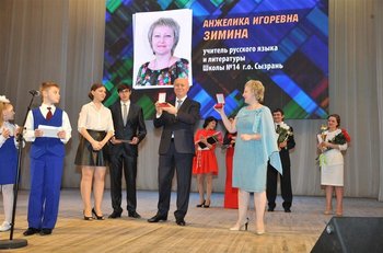 В Самарской государственной филармонии прошла церемония подведения итогов конкурса \”Учитель года Самарской области\”-2016. Обладателем титула стала учитель русского языка и литературы школы №14 Сызрани Анжелика Зимина, которая за победу в конкурсе получила из рук губернатора Самарской области Николая Меркушкина ключи от машины.