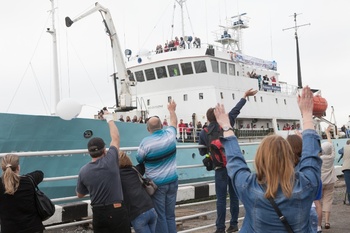 Научно-исследовательское судно \”Профессор Молчанов\” Северного Арктического федерального университета отправилось из Архангельска в первую экспедицию \”Арктического плавучего университета\” 2014 года – еще одна состоится в августе. На борту корабля – студенты, аспиранты, ученые.