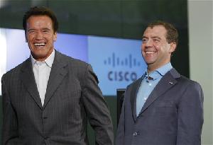 Накануне, после прибытия в российскую столицу, Шварценеггер сделал в Twitter запись о впечатлениях от поездки в московском метро и о том, что он очень хочет встретиться с Медведевым. Наш президент ответил ему «Добро пожаловать в Москву». Известна история их знакомства: в июне этого года глава России в ходе поездки в США и по приглашению калифорнийского губернатора побывал в Кремниевой долине и посетил офисы ряда известных на весь мир компаний, таких как Twitter, Cisco, Apple, Yandex Labs. По словам Медведева, он не столько хотел посмотреть, «как там все устроено, это не экскурсия, а хотел, чтобы в результате этой поездки установились полноценные отношения».