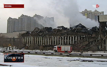 Вице-премьер РФ Аркадий Дворкович, которому поручено возглавить работы по восстановлению библиотеки ИНИОН, осмотрел здание, сильно пострадавшее от пожара.