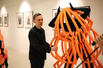 Кстати, Роман Ермаков в этот вечер творчески раздвоился и отметился не только в зале музея Веры Мухиной, но и в ангаре Центра Современного искусства Винзавод. На этот раз «подопытными» объектами для скульптора стали актеры авторского театра «Эскизы в пространстве», а темой для высказывания – космические сновидения. Участники проекта пытались показать зрителям как выглядят сны котов о космосе, сны космонавтов о своих котах, сны космодрома о мороженом. Отсюда и фривольное название: «Мур-мур. Байконур» Сны вышли яркие и удивительные: артисты расхаживали на ходулях, взлетали на качелях и все под нескучную музыку композитора Саши Ночина.