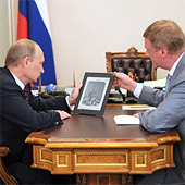Вчера гендиректор «Роснано» Анатолий Чубайс показал гаджет премьеру Владимиру Путину. «Мы поняли, что этот технологический продукт — компьютер без кремния — может иметь применение в образовательной сфере», — цитирует Чубайса стенограмма с сайта правительства. В этот компьютер, по словам Чубайса, уже «закачан полный комплект учебников по всем дисциплинам до 6-го класса», причем все электронные учебники адаптированы для компьютера, содержат гиперссылки и т. д. С 1 сентября 1000 образцов таких планшетников поступит в школы разных регионов, пообещал Чубайс, добавив, что уже имеется поддержка Минобразования. Министерство готово провести эксперимент, если подтвердится, что пластиковые компьютеры безопасны, недороги и вандалоустойчивы, сказал министр образования и науки Андрей Фурсенко (до недавних пор он возглавлял наблюдательный совет «Роснано»). Электронные учебники, по его словам, уже используются в опытном режиме в нескольких регионах, в частности в Петербурге и Татарстане. Устройства совершенно безопасны, «тут нет стекла даже на экране» и ничего не случится, «даже если школьники решат подраться друг с другом с помощью компьютера», заверил Путина Чубайс. Ориентировочная цена такого устройства, по его словам, составит 12 тысяч руб., но при больших объемах производства она снизится. Деньги на закупку оборудования для школ выделяют регионы, напоминает Фурсенко, но Минобразования готово рекомендовать им приобрести такие планшеты. Они гораздо легче учебников (от 300 г, по словам представителя «Роснано»), и детям будет интереснее учиться. Органический пластик, из которого изготовлен компьютер для школ, — близкий аналог «электронной бумаги»: устройство такое тонкое, что ,если бы не жесткая рамка, его можно было бы даже скатать в трубку. «Роснано» использует учебники издательства «Дрофа», говорит коммерческий директор издательства «Просвещение» Михаил Кожевников. Переход школ на электронные учебники займет несколько лет, уверен он, поэтому пока их появление не угрожает издательскому бизнесу. «Просвещение» уже продает электронные приложения к учебникам в виде CD-дисков.По материалам vedomosti.ruФото пресс-службы премьер-министра РФ