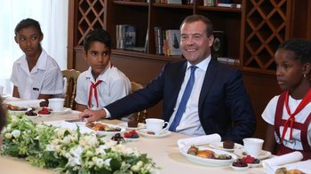 Во время встречи с кубинскими школьниками Дмитрий Медведев расспрашивал ребят о том, что они увидели в Москве, что запомнилось, что показалось интересным. Премьер-министр России отметил: «В России есть, что посмотреть. Вы уже несколько дней у нас, вы сейчас в Москве – это столица, потом поедете в такое чудесное место, как лагерь «Орлёнок» – раньше он назывался пионерский. Надеюсь, вам там понравится. Там море, может быть, оно не такое тёплое, как ваше, но, тем не менее, всё равно хорошее. Там много ребят, я надеюсь, что вы там найдёте новых друзей, и этот первый визит в Россию для вас будет очень запоминающимся. Может быть, кто-то из вас потом приедет учиться в Российскую Федерацию, уже в университет. Для нас это очень важно, это тот капитал, который закладывается в будущее, в основу наших отношений – между Россией и Кубой».