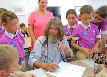 Известный российский путешественник Федор Конюхов посетил \”Артек\”. Для ребят из Детской морской флотилии он провел мастер-класс по управлению судном, а с юными художниками поделился секретами создания графического рисунка и линогравюры.