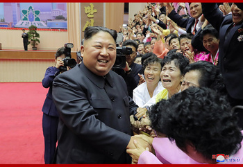 Председатель Госсовета КНДР Ким Чен Ын встретился с участниками 14-й национальной конференции педагогов в Пхеньяне и сфотографировался с ними на память. Об этом сообщило в субботу Центральное телеграфное агентство Кореи (ЦТАК).