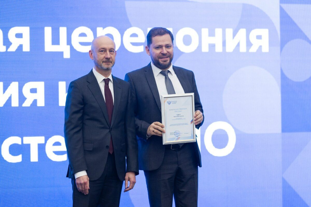 Заместитель министра просвещения РФ Владимир Борисович Желонкин вручил благодарственное письмо главному редактору «Учительской газеты» за значительный вклад в развитие системы среднего профессионального образования Российской Федерации.