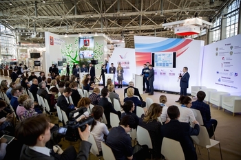 Особое место на выставке занимают стенды федеральных министерств и ведомств – Минэкономразвития России, Минпромторга России, Минздрава России, Минобрнауки России, Минтруда России, Минкомсвязи России, Федерального казначейства, Федеральной антимонопольной службы и др.
