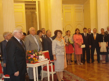 В день рождения города в Мариинском дворце состоялась торжественная церемония вручения знаков отличия «Почетный гражданин Санкт-Петербурга». Решением Законодательного Собрания Санкт-Петербурга в этом году этого звания удостоены народный артист СССР, актер Большого драматического театра имени Г.А. Товстоногова Олег Басилашвили и заслуженный учитель России, учитель Второй Петербургской гимназии Лариса Листова.