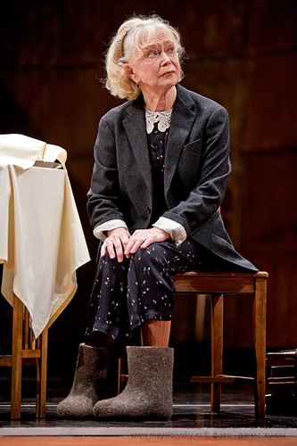 Строгой лютеранке не чуждо и мирское: словно возвращаясь в мечтах в свою молодость, неожиданно снимает головной убор Анна-Регина, рассыпая по плечам светлые кудряшки и становясь похожей на свою юную подругу. В этой мизансцене актриса демонстрирует умение органично перейти от комизма к лирике, тонко, меланхолично и нежно воплощая найденное режиссером решение. Коротенький эпизод становится украшением спектакля благодаря соединению таланта его создателей и исполнительницы.