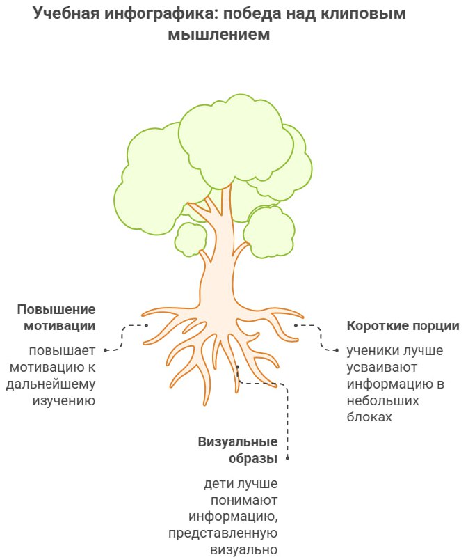 - Риск поверхностности. Яркая картинка может создать иллюзию понимания, скрывая отсутствие глубинного знания. Задача учителя — использовать инфографику как трамплин для углубления в тему, а не как замену ей.