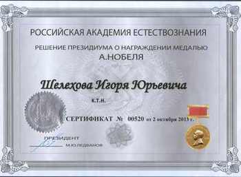 Российская академия естествознания наградила медалью имени Альфреда Нобеля доцента кафедры городского строительства и хозяйства Иркутского государственного технического университета Игоря Шелехова. Медаль международной ассоциации ученых, преподавателей и специалистов вручается за большой вклад в развитие изобретательства.