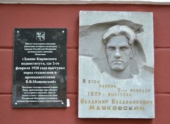 – мемориальные доски, в которых, помимо текста, включены различные барельефные изображения. Бронзовый барельеф может исполняться без надписи или надпись пишется отдельно на плите. Изготовление барельефов, происходит по алгоритму и не ограничено в размерах. Ярким примером служит доска, установленная в честь знаменитого поэта и публициста 20 века Владимира Владимировича Маяковского (1893 – 1930) и расположенная по адресу: улица Ленина, д.111. Система крепления мемориальной доски изготавливается внутри изделия, барельеф также получает систему крепления к стене (см. Приложение № 3).