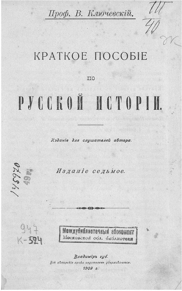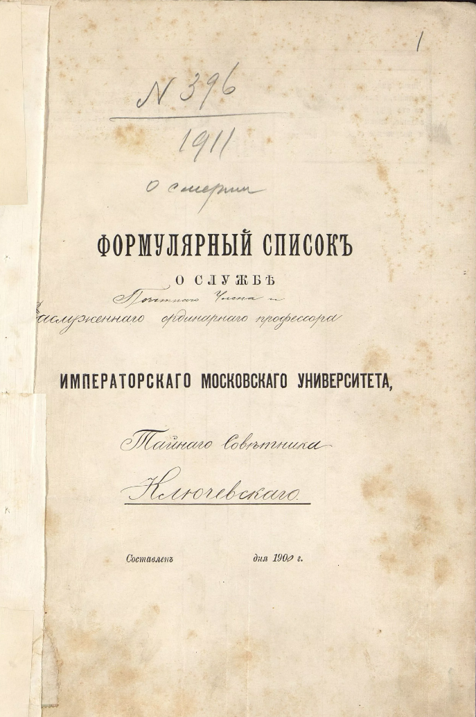 Среди деятелей русской науки и образования второй половины XIX – начала XX века видное место занимает крупнейший отечественный историк Василий Осипович Ключевский (1841–1911), заслуженный профессор Московского императорского университета, академик Императорской Санкт-Петербургской академии наук, председатель Императорского Общества истории и древностей российских при Московском университете.