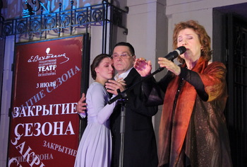 Но сегодня – прощание. Разлука будет не очень долгой – меньше двух с половиной месяцев, а потому и прощание должно быть легким и веселым. Этой традиции – выходить на уличную сцену, построенную возле театра, в день последнего спектакля – седьмой год. И год от года зрителей все прибывает, и год от года сюрпризы, которые готовит театр своим гостям – все неожиданнее, изумляя радостными открытиями.