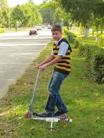 Один «школьник» с рюкзаком за плечами готовится «выбежать» на дорогу у гимназии «Новоскул». Другой, у школы №8, собирается «выехать» на проезжую часть на самокате. «Фигуры так реалистичны, что поневоле притормаживаешь,» – говорят первые автомобилисты, оценившие новинку. Кстати, для изготовления фигур использовались фотографии новгородских школьников, согласившихся участвовать в этом проекте. Фигуры невозможно унести, они антивандальные и весят около 60 килограммов каждая. Городской казне изготовление «композитных школьников» обошлось чуть меньше чем в 40 тысяч рублей, при этом фотографии бесплатно обработала одна из новгородских фирм-спонсоров.