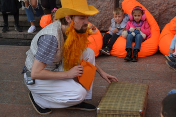Родители, которые привели своих детей на «Лестницу», может и не догадывались – как им повезло. Обычно достать билеты на спектакли театров-участников фестиваля практически невозможно: они работают в маленьких камерных залах, и зрители записываются на их представления за месяц-два. На площади же место нашлось всем – дети сидели прямо на пуфах и артисты старались увлечь представлением каждого.