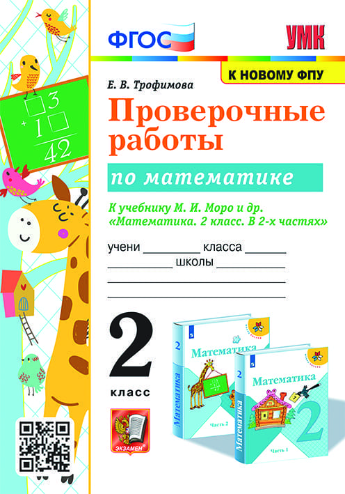 Ещё одно пособие, которое заслуживает внимание при работе по учебнику М.И. Моро, – Проверочные работы по математике издательства «Экзамен» автора Е.В.Трофимовой. Они содержат в себе тексты проверочных работ и тестов по математике для начальной школы (1-4 класс), которые составлены в полном соответствии с программой и учебно-методическим комплектом пособий по математике. Материал пособия представлен в определенной системе: проверочные работы составлены по отдельным, наиболее важным вопросам, на которые разбивается каждая тема определенного года обучения (1-4 класс), а тесты обеспечивают итоговую проверку всей изученной темы.