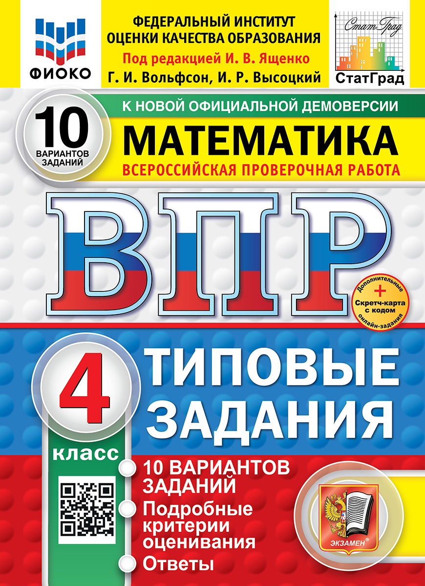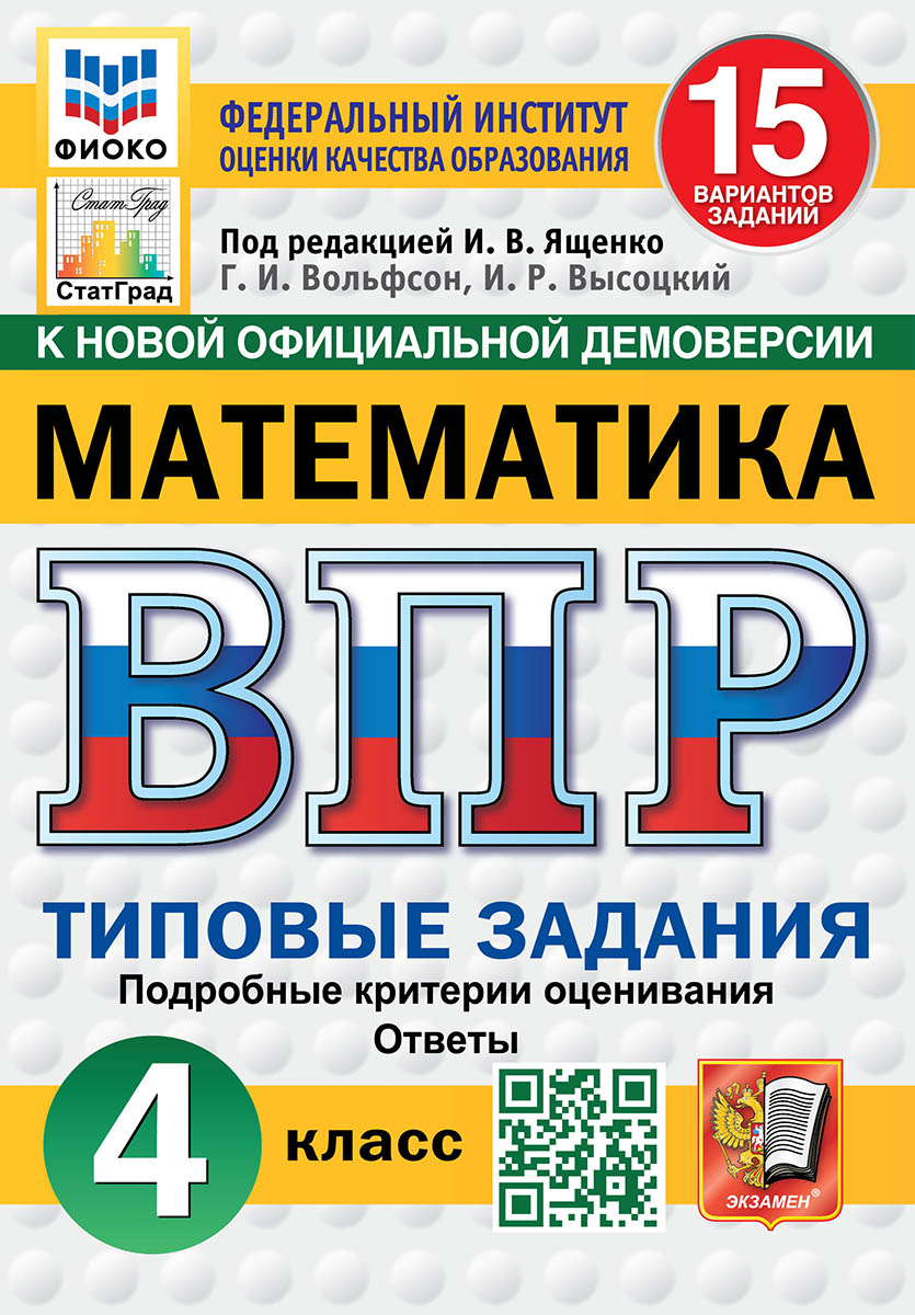Издательство «Экзамен» является лидером по выпуску пособий для подготовки к ВПР по всем предметам и классам. Пособия имеют официальный гриф «Рекомендовано Федеральным институтом оценки качества образования для использования в организациях, осуществляющих образовательную деятельность по программам общего образования». Гриф обозначен на обложках изданий логотипом ФИОКО. Для удобства пособия от издательства «Экзамен» выходят в трех форматах — 10, 15, 25 вариантов. Сборники содержат все необходимые инструкции, детальные разборы выполнения заданий, подробные критерии оценивания, ответы, которые в случае необходимости легко изымаются из пособия. Все варианты в данных пособиях полностью соответствуют демоверсии ВПР 2026.