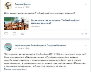 В Министерство просвещения РФ назвали недостоверной информацию о якобы принятом решении о досрочном завершении учебного года. Фейковые новости появились сегодня в социальных сетях и стали активно распространяться.