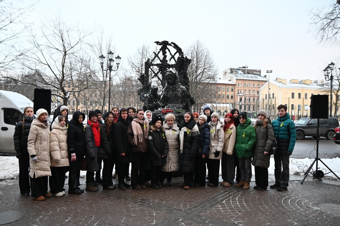 У Государственного мемориального музея обороны и блокады Ленинграда прошла торжественно-траурная церемония: здесь возложили цветы к памятнику «Блокадному учителю». Инициатором памятного мероприятия выступил Совет старшеклассников при Комитете по образованию Санкт-Петербурга.