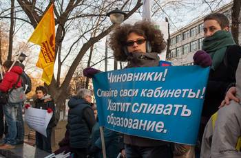 \”Мы проводим акции уже года три. Сначала мы боролись только со вступающим в силу законом об образовании. Группой гражданской инициативы за бесплатное образование, это общероссийская организация, куда мы от Моссовета входим, были разработаны поправки к новому закону об образовании. Мы намерены добиваться принятия этих поправок. Их уже рассматривают в Совете Федерации\”, – цитирует координатора митинга Ангелину Еньшину \”Русская служба новостей\”.Среди участников – представители партии \”Яблоко\”, \”Партии прогресса\”, \”Партии пятого декабря\”, \”Левого фронта\”, профсоюзы \”Учитель\” и \”Университетская солидарность\”, а также родители детей из объединенных школ.