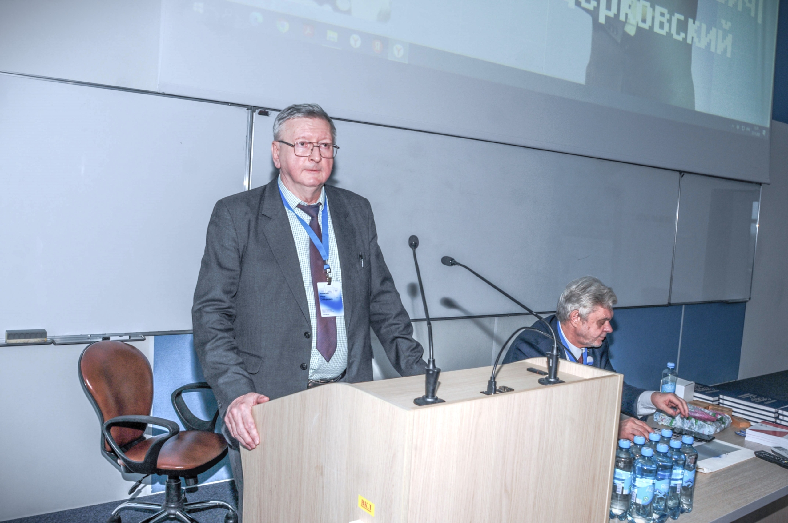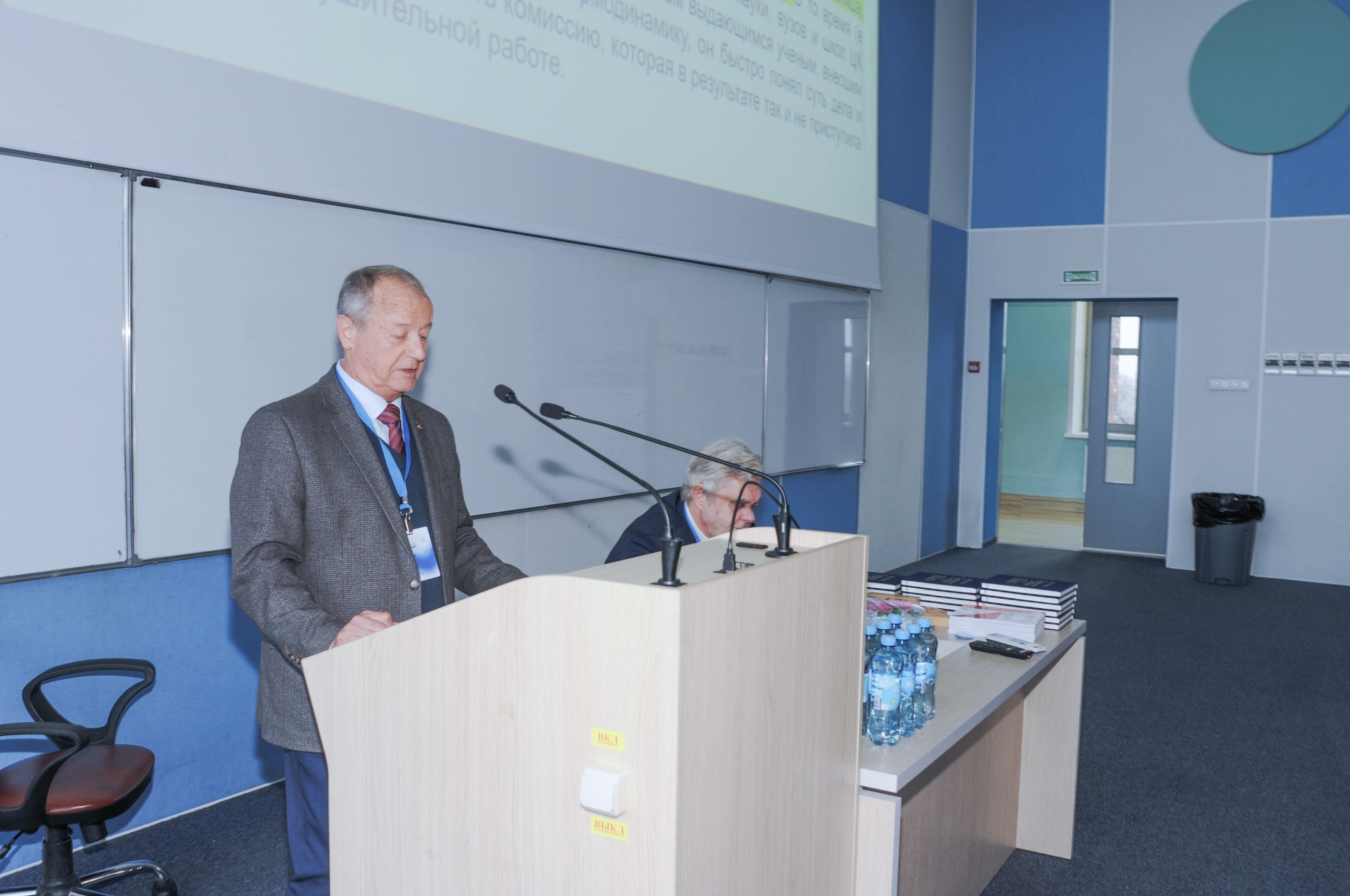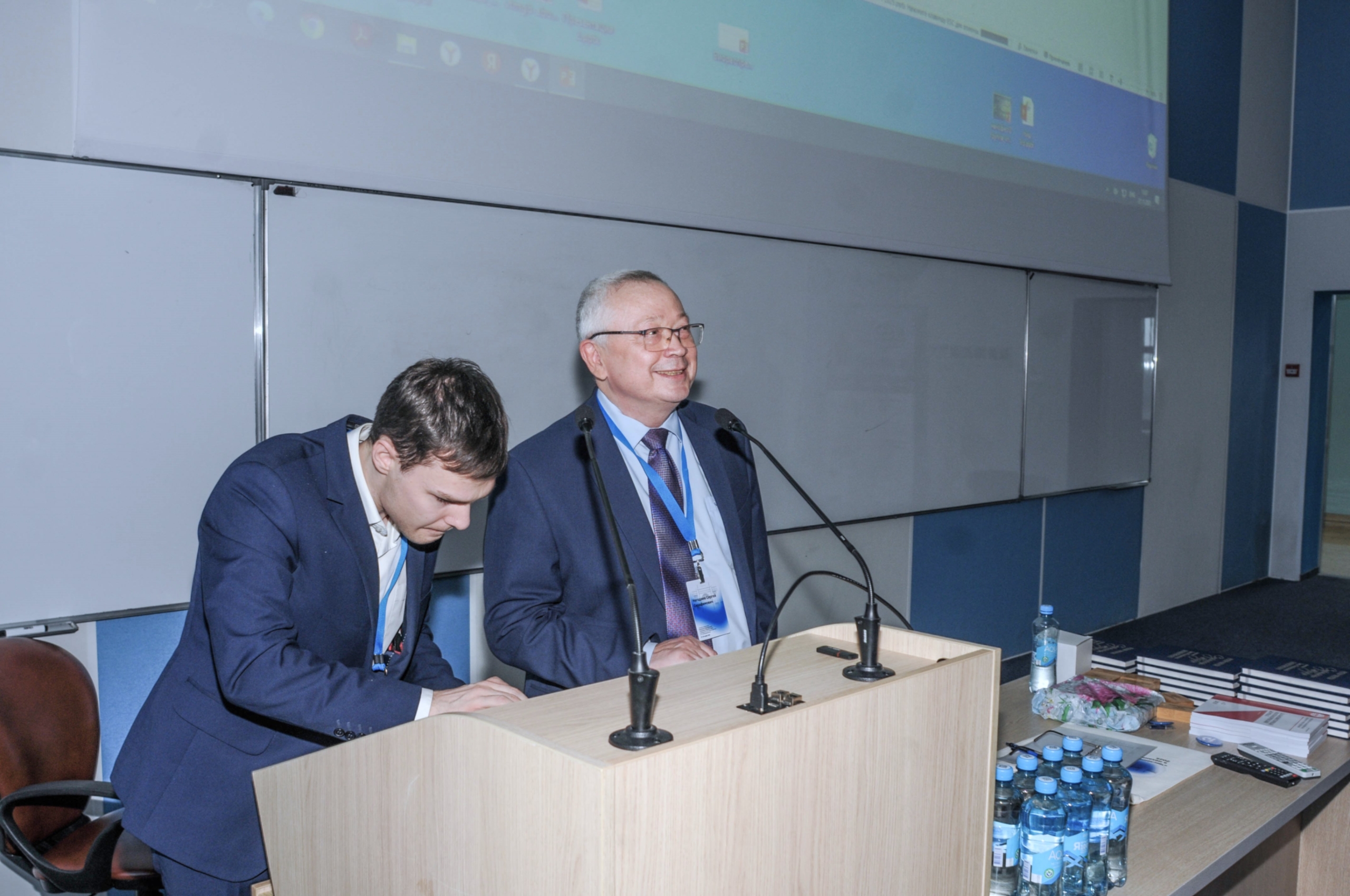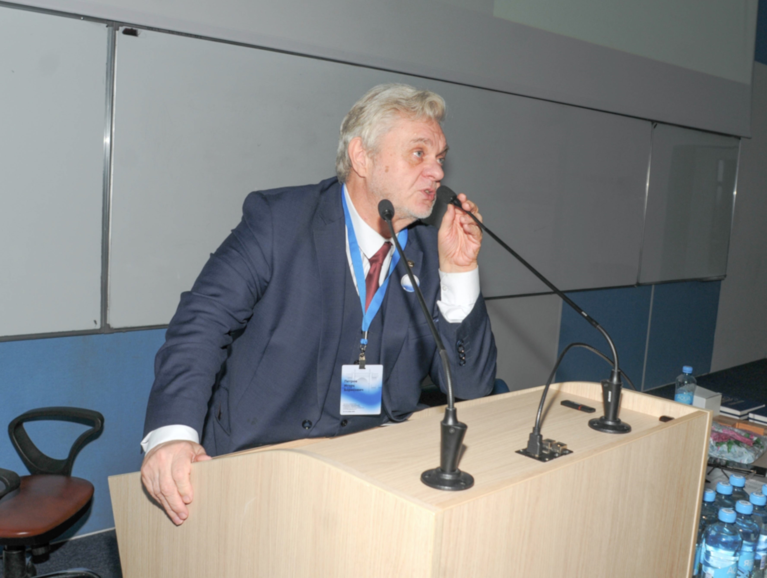 Первая секция в поточной аудитории корпуса «Арктика» прошла под председательством Игоря Борисовича Петрова, научного руководителя кафедры информатики и вычислительной математики, кафедры вычислительной физики МФТИ, члена-корреспондента РАН, академика РАЕН, доктора физико-математических наук, профессора. С приветственным словом выступил Николай Николаевич Кудрявцев, академик РАН, доктор физико-математических наук. Он погрузил собравшихся в историю создания МФТИ и формирования научной школы вычислительной механики, поведал о взаимоотношениях действующего руководства с Олегом Михайловичем Белоцерковским.