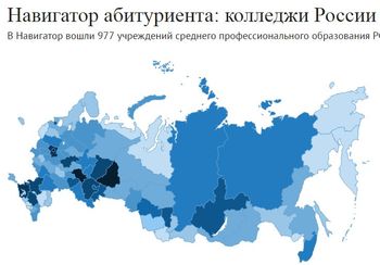 Для подготовки \”Навигатора абитуриента” в 2016 году была собрана информация о почти тысяче учреждений среднего профессионального образования. Это составляет примерно треть от общего количества российских техникумов и колледжей, но нескольким регионам охват составил до 100% системы СПО.