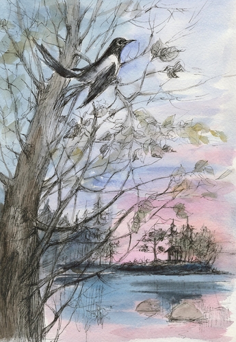 А потом Серафима увидела сорок! Они галдели, но ни слова понятно не было. Сороки же финские! Ей захотелось познакомиться с ними, а может, и подружиться. Не пожить ли на острове? Да и несколько самых важных слов она уже знает!