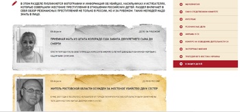 В новом разделе будут публиковаться резонансные и общеизвестные факты убийств, насилия и истязания российских детей, к которым причастны в том числе иностранные граждане. Каждое дело будет сопровождаться фотографиями как обвиняемых, так и уже осужденных лиц, потому что их нужно знать в лицо, уверены в СК.