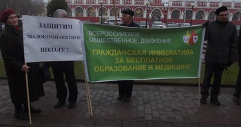 Цель пикета – обратить внимание местных политических фракций на судьбу сельской школы. Вопрос касается в данном случае статьи 9 Закона \”Об образовании в Калужской области\” в определении \”малокомплектной образовательной организации\”: \”Малокомплектными являются образовательные организации с численностью обучающихся до 100 человек\”.- Чиновники закрывают малокомплектные школы под лозунгом повышения качества образования. Что же происходит на самом деле? Дети из отдалённых сёл добираются до школы по два часа в одну сторону, так что четыре часа их жизни проходит впустую. Дома им нужно помочь родителям с делами, так что на уроки не остается времени, – говорит Елена Климова. – Более того, если ребёнок опоздал на автобус, или размыло, например, дорогу, которую могут ремонтировать неделями, то ученик в школу не попадает вовсе.Не секрет, что сегодня острейшая проблема для жителей села – “оптимизация” малокомплектных школ. Этот разрушительный процесс связан с тотальным применением системы “нормативно-подушевого финансирования” в масштабах всей страны. Сельская школа – не просто образовательное учреждение, это очаг жизни в наших деревнях. Закрытие школы в селе часто обрекает деревню на медленное угасание.- В принятом законе, внесенным областным министерством образования и науки, и вступающим в силу с 1 января 2014 года, к малокомплектным стали относиться лишь школы с количеством до 50 учащихся. Это означает, что малокомплектная школа с количеством детей от 50 до 100 человек будет недофинансироваться согласно нормативно-подушевому принципу (№83-ФЗ). Это приведёт к массовому закрытию сельских школ в Калужской области, – считает Елена Климова.К пикетчикам из администрации области и заксобрания так никто и не вышел.Фото http://vk.com/iniciativa_kaluga