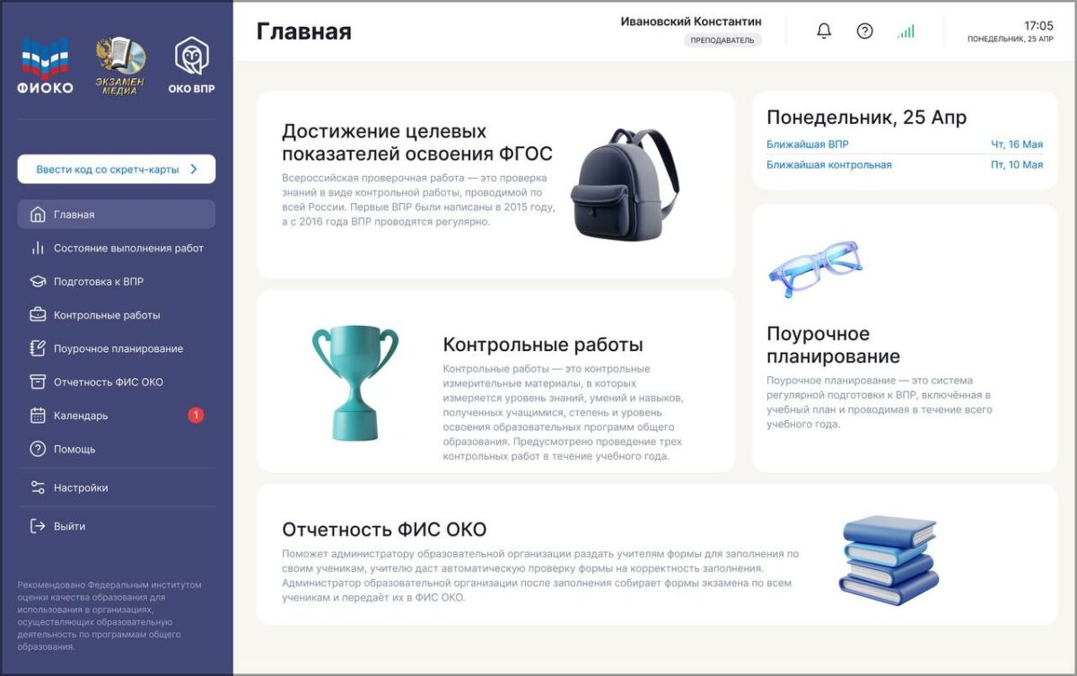 «Экзамен-Медиа» – единственный поставщик образовательных материалов в УБ ЦОК, чьи электронные образовательные ресурсы для подготовки к ВПР получили положительную экспертную оценку и рекомендованы ФГБУ «ФИОКО». В рамках Универсальной библиотеки педагогам доступен контент ОКО ВПР КИМ. Он зарекомендовал себя как надежный инструмент для повышения показателей ВПР среди образовательных организаций и соответствует текущей демоверсии ВПР. Найти материалы очень просто – в поисковой строке достаточно ввести «одобрено ФИОКО», и педагог увидит весь доступный ему контент.