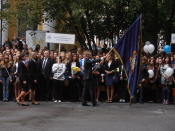 Торжественная церемония посвящения в студенты Российского государственного педагогического университета им. А.И.Герцена традиционно прошла во внутреннем дворе вуза перед памятником Константину Ушинскому.