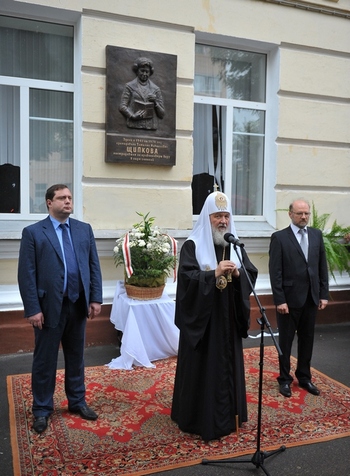 Мемориальная доска в память педагога Татьяны Щипковой, репрессированной за православную веру в 1970-80-х годах, была открыта в Смоленске, в церемонии принял участие патриарх Московский и всея Руси Кирилл.