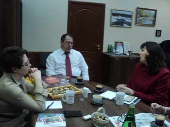 Накануне Нового года заместитель директора Департамента государственной политики в сфере общего образования Минобрнауки РФ Павел Сергоманов встретился с победителями Всероссийского конкурса «Учитель года России-2015» – с заместителем директора гимназии №12 Липецка, учителем информатики и физики Аллой Волковой и учителем английского языка из подмосковного Пущино Марией Ахапкиной. На встрече присутствовали также первый заместитель главного редактора «Учительской газеты» Ирина Димова и консультант отдела нормативного регулирования деятельности педагогических и руководящих работников Департамента государственной политики в сфере общего образования Минобрнауки России Кирилл Демушов. Павел Аркадьевич предложил педагогам обсудить итоги уходящего года, выделив при этом наиболее важные темы для всего учительства страны.