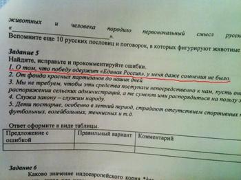Речь идет о тестах, которые московские школьники писали в минувшую субботу в день митинга на Болотной площади. В одном из заданий теста фигурировала фраза \”О том, что победу одержит \”Единая Россия\”, у меня даже сомнений не было\”.Данный инцидент вызвал широкий резонанс в соцсетях и блогах.\”В одном из заданий олимпиады использовалась в качестве примера ошибки в русском языке неграмотная фраза газетной публикации, процитированная в газете в 2009г. Фраза эта звучит особенно неуместно в контексте прошедших 4 декабря выборов в Госдуму\”, – говорится в письме.\”Приносим извинения участникам Олимпиады за неудачный подбор заданий\”, – сообщается в документе.МИОО также рекомендует не использовать в олимпиадных, контрольных и экзаменационных заданиях материалов, которым может быть придан политический оттенок.По материалам rbc.ru