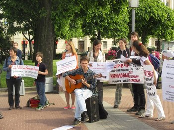 Согласованный пикет в защиту образования прошел 4 июня у Финляндского вокзала, собрав около 40 человек. Педагоги и студенты вышли с лозунгами \”Сэкономите на школах, разоритесь на тюрьмах!\” и \”Защитим право учиться и возможность учить\”. Как сообщил один из организаторов акции Андрей Демидов, все прошло довольно мирно.