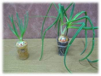 2 ученик: Важное место в работе овощевода занимает выращивание лука. Принято считать, что лук — это обычный овощ. На самом деле есть целое луковое семейство, где можно встретить множество «родственников». О некоторых из них вам расскажет Миша и Андрей. Дети рассказывают о видах лука, информацию и фотографии они подготовили вместе с родителями, а некоторые виды выращивали на своих огородах. 1 ученик: Хотя и существует множество видов этого уникального «лекаря», но используем мы в основном лишь малую их часть: репчатый — в суп, зеленый — в салат. Но и это очень хорошо, ведь этот овощ содержит огромное количество полезных веществ. 3 ученик: Почему от лука плачут? Говорят, он очень злой. Кто же злит его на даче? Почему же он такой? Я у бабушки спросила: – Расскажи мне, почему? И она мне объяснила, Разъяснила, что к чему. Что лучок – полезный овощ, И никто его не злит. Он всегда спешит на помощь, От микробов защитит. Лук сырой, конечно, горький, А чеснок ещё горчей. Но зато помощник стойкий От простуды для людей. 2 ученик: Раньше он вообще считался божественным растением. Древние медики утверждали, что лук из-за своей горечи укрепляет желудок, возбуждает аппетит. А смесь лукового сока с медом помогает от ангины. Кстати, этот уникальный овощ не только помогает справиться с некоторыми болезненными недугами, но и прекрасно очищает воду: если в нее бросить кусочки лука, вода избавится от неприятного запаха. 1 ученик: Мы решили попробовать себя в роли овощевода. 2 ученик: Взяли стаканчики с водой и стаканчики с землей емкостью 250 мл. Посадили луковицу донцем вниз, так как из нижней части развиваются корни. 1 ученик: Стаканчики с луком поставили на подоконник, чтобы было больше света: мы знаем, что это помогает росту растений. Следили за тем, чтобы корни всегда были в воде, для этого каждый день проверяли наш лук и доливали воду. 2 ученик: На верхней части появились зеленые перья. 1 ученик: По мере роста зеленых перьев происходят изменения в луковице. Луковица становится день ото дня все меньше и меньше. Значит, питательные вещества, которые находятся в мясистых чешуях, переходят в листья. 2 ученик: Мы сделали вывод, что выращивание репчатого лука на перо не требует больших затрат. Достаточно посадить луковицу в банку с водой, и через 3-4 недели можно снимать урожай. Но мы заметили, что перья лука, посаженного в землю, взошли быстрее. 1 ученик: Таким образом, для выращивания лука в комнатных условиях необходимы вода, свет, тепло, для быстрого появления перьев – земля и, конечно же, наше внимание. 4 ученик: Вот на грядке лук зелёный, Ярким солнцем освещенный, Стрелы вытянулись в ряд, Как солдатиков отряд. Знают все, что лук полезен, Витаминами богат, Но немного горьковат. В этом лук не виноват. От природы он такой, Очень скромный и простой. Ешьте все зелёный лук, Он здоровью верный друг! После чтения стихотворения ребенок рассказывает о том, как дома он готовил салат. 5 ученик: 28 августа 2009 года в селе Мячково Коломенского района был открыт памятник луку. На нем надпись: «Счастье наше луковое». Это село давно известно в Коломенском районе и за его пределами своим луком – его так и называют «мячковский»! Лук здесь в образе Чиполлино. Памятник луку расположен рядом с детской площадкой, что сделало место особенно любимым для прогулок ребятишек и их мам. Нам очень понравился этот с