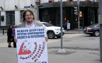 В Москве и регионах проходит межрегиональная кампания профсоюзов \”Учитель\” и \”Университетская солидарность\” против сокращения расходов на образование в федеральном и региональных бюджетах на 2016 год. Активисты проводят пикеты у зданий ключевых ведомств, а также планируют вручить чиновникам \”Золотой кол\” за самое вредное предложение в сфере образования.