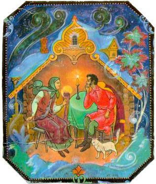 Поэтому и любимым писателем, источником вдохновения для многих стал Пушкин. Пушкин и художники-миниатюристы принадлежат к разному времени, но их, бесспорно, роднит единство духовных корней. Великий народный поэт оказался особенно близок и понятен народным художникам.