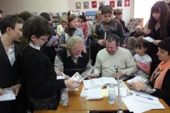 В тот же день в детской областной библиотеке имени Альберта Лиханова прошел необычный праздник – мастер-класс от детского писателя Льва Яковлева, руководителя редакционно-издательского центра «Черная курица» при Фонде Ролана Быкова. (Лев Яковлев – автор нескольких сборников стихов, школьных частушек и – веселой гусеницы Чегоши, сочинявшей «обожалки», а также издатель юмористического журнала «Вовочка»). На своем мастер-классе писатель общался с воспитанниками центра развития детского литературного творчества «Родная лира» при библиотеке имени Лиханова, поделился с ребятами профессиональными секретами, как лучше выразить свои мысли и чувства в произведении, сделать его более ярким и интересным. В разговоре участвовали школьники из Белгородского и Яковлевского районов, которые читали свои произведения и задавали вопросы, а ребята из Грайворонского района общались с писателем в режиме веб-конференции. Помогал юным авторам представлять и анализировать свои работы член Союза писателей России, руководитель центра «Родная лира» Валерий Черкесов.