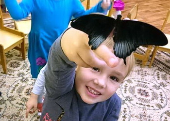Первой на свет появилась Морфо – огромная бабочка голубого цвета. Из следующей куколки выпорхнули зелено-черный Графиум, лимонная Болина и Золотая птицекрылка. Экзотические бабочки стали летать по группе и садится на ладони детей. Дошколятам понравилось ухаживать за бабочкарием и наблюдать, как «палочка» превращается в царицу-бабочку.