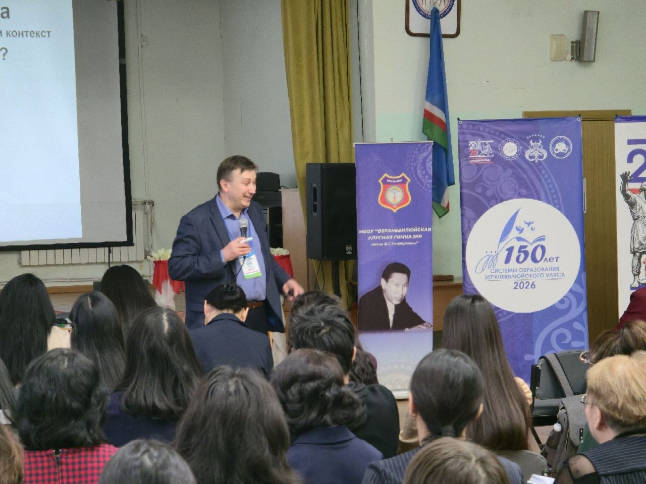 Особую ценность фестивалю придали мастер-классы и семинары от приглашенных экспертов, которые прошли в Улусной гимназии и в республиканском лицее. Российские мэтры педагогики наглядно показали, как превращать сложные темы в увлекательные квесты, делились секретами использования цифровых инструментов и современных методик. Тематика охватила широкий спектр вопросов – от методик преподавания до развития профессиональных навыков педагогов. Ключевые темы мастер-классов: «Путь мастера в образовании»; «Что управляет уроком»; «Формула успешного урока»; «Учитель на сцене: мастерство публичного выступления». Учителя активно участвовали в обсуждении актуальных вопросов: от развития образовательных технологий до повышения личной мотивации. О значимости мероприятия высказался Денис Рочев – победитель конкурса «Учитель года России-2014», директор школы № 636 Санкт-Петербурга: «Такие мероприятия – один из самых эффективных инструментов повышения квалификации педагогов. Учителя могут увидеть выступления коллег с богатым опытом в конкурсном движении и перенять их знания. Каждый участник способен найти что-то ценное – новый приём или методику, которую уже завтра можно применить на уроке со своими учениками». Денис Рочев особо отметил ценность межрегионального обмена опытом: учителя Верхневилюйска смогли познакомиться с подходами коллег из Москвы, Орла и Санкт-Петербурга. По его словам, подобные фестивали дарят педагогам вдохновение и открывают новые источники идей для ежедневной работы. «Это помогает развивать навыки публичного выступления и коммуникативные компетенции», – подчеркнул он, и в завершение добавил, что педагогический фестиваль «Юбилейный» стал важным событием для учителей региона. Он отметил, что подобные масштабные мероприятия проводятся не так часто в России и имеют особую ценность для небольших населённых пунктов, предоставляя педагогам редкую возможность профессионального роста и живого общения с коллегами из других регионов. А главный спикер и эксперт Андрей Наумович Иоффе, доктор педагогических наук, кандидат исторических наук, доцент, заведующий лабораторией развития личностного потенциала в образовании Московского государственного педагогического университета, отметил, что Верхневилюйский район называют одним из «бриллиантов» образования не только на уровне республики, но и в масштабах всей России. Он подчеркнул, что в ходе визита получил многогранные положительные впечатления: удовольствие не только от знакомства с местной кухней и достопримечательностями, а также от общения с людьми и, что особенно важно, от профессионального взаимодействия. А. Н. Иоффе обратил внимание на высокий уровень вовлечённости местных педагогов: они искренне заинтересованы в своём деле и демонстрируют готовность развиваться, меняться и двигаться вперёд. Эксперт подытожил: богатый потенциал, накопленный в республике – это тот опыт, который необходимо распространять и брать за образец другим регионам России.